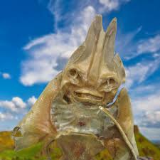 A Jenny Haniver is the dried carcass of a skate fish (a smaller version of a sting ray) that was carved to look like a sea monster and sold to gullible tourists as proof of sea monsters. These specimens are thought to have inspired stories about the Sea Monk, a supposed sea monster that looked like a man of the cloth — sort of an underwater priest, if you will.